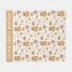 Adorable pattern of a bear reading books with woodland foliage and cups of coffee on beige background. Personalise with name or message.