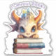 *** This BABY DRAGON is enjoying BOOKS. The BABY DRAGON is contemplating a pile of books.