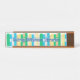 I was very pleased when I received my name plate. The brightness of the yellow caught my eye immediately because it was so true to color of the picture. The sturdiness of the material lets me know it won’t get bent or broken easily. The sturdiness of the card stock is a plus as well. The colors even on the chalkboard and apple are true to life colors. The apple looks like you can take a bite out of it.
