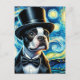 Cute Boston Terrier in a Tophat Van Gogh Postcard