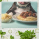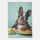Cute Boston Terrier With Spaghetti Bolognaise Kitchen Towel