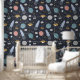 Cute Boys Pattern Rocket and Cosmos Pattern Wallpaper