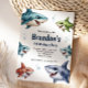 Make a splash with this fun watercolor shark birthday invitation — perfect for your little ocean explorer’s big day! Featuring a hand-painted shark surrounded by blue watercolor waves and bubbles, this underwater design sets the tone for an exciting shark or ocean-themed celebration. Easily personalize with your child’s name, age, party details, and RSVP information. Great for boys’ birthdays of any age, from toddlers to big kids!