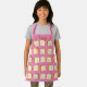 Cute bread characters with pats of butter on this kids' cooking or baking kitchen apron personalized with their name and choice of background colour, perfect for your budding chef or kitchen helpers.
