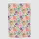 A cute, bright, colourful messy floral pattern, like paint splatters or stamps. Neon colours, pink, orange, dark blue, turquoise, purple, green.