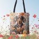 Cute Brown Dachshund And Cosmos Flowers Tote Bag