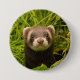 A button with an adorable photograph featuring a small brown ferret standing up in some long grass. Cute as can be!