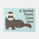 Greet your guests in style with this door mat or welcome mat that features an illustration of a cute brown ferret against a mint green background with your own choice of message in brown lettering. Leave the funny "A Spoiled Ferret Lives Here" message or change this to your own personalized greeting using the template field.