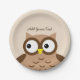 Cute Brown Owl Custom Text A03A PALE MOCHA Background. Cute owl themed paper plate is a sweet choice for a birthday party! Add your text.
