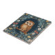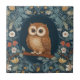 Cute Brown Owl Dark Blue Colourful Floral Flowers Tile