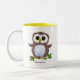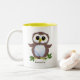 Cute Brown Owl, Laurel Leaves & Calligraphy Two-Tone Coffee Mug
