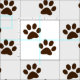 Features a pattern of brown paw prints.