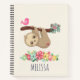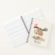 Spiral notebook with an illustration of a cute brown sloth hanging upside down. This funny little guy is holding onto a branch which has a little pink bird on