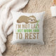 This throw pillow has a cute brown sloth and the saying "I'm not lazy I just work hard to rest" against a white background.