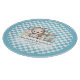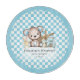 Adorable baby teddy bear and friends designed for your guests will fall in love with these guys. Bunny rabbit and elephant enjoy a picnic with bear, their basket and a milk bottle. Baby blue and white check pattern background. Templates made for you.