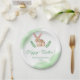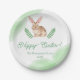 Cute Brown Watercolor Bunny With Greenery Easter Paper Plate