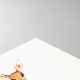 A canvas print with a beautiful brown doe with white spots on her fur. A cute bird sitting on the deer's back. An elegant flower arrangement composed of watercolor roses and light green leaves beneath her feet. A peach coloured background