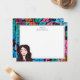 Stay in touch these bold and vibrant personalized flat stationery note cards featuring an original illustration of a cute brunette with a light skin tone and a background of colourful leaves. A wonderful way to send snail mail love. Original illustration by Debbie at The Spotted Olive. © 2021-Present | The Spotted Olive | All Rights Reserved.