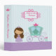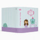This 1.5" avery binder has a light teal stripe background with a brown hair princess standing next to her carriage. There is a scroll name plate on the front where you can easily personalize this with your name on the front and the spine. Graphics by Stockberry Studio at Mygrafico