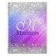 Cute brushed purple faux silver glitter monogram notebook