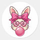 Cute Bubblegum Bunny with Heart Glasses Classic Round Sticker