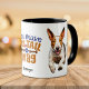 "You Make My Tail Wag" declares this cute mug. An adorable Bull Terrier dog runs toward you on each side of the text. Cute for the terrier owner, but appropriate for anyone. You can add someone's name at the bottom middle, or delete the text, if you'd like.