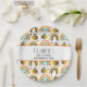 Baby shower or birthday event paper plates with a cute patterned background. Whimsical bees and rainbows with little hearts and stars scattered around. Adorable and delightful.