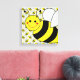 A big yellow and black bumble bee with a bee pattern with some flowers, hearts, swirls, twirls, and bee trails.