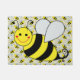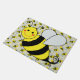 A big yellow and black bumble bee with a bee pattern with some flowers, hearts, swirls, twirls, and bee trails. The big bee illustration can be resized and moved.