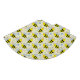 Yellow and black bumble bees as a repeat pattern with some flowers, hearts, swirls, twirls, and bee trails.