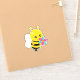 This is a cute bumble bee themed sticker with a pink and blue flower. The background is white. Order yours today!