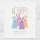 Simple Easter personalized wine bottle label featuring cute bunnies in pastel rainbow colours and fun typography. Perfect for Easter/spring party favour or Easter gifts. Customize with short greeting and name.