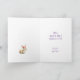 Cute watercolor illustration of two bunnies (one with a pink bow), spring flowers and a wheelbarrow with a pink and blue sky background. Personalize it with the provided templates on the front and message and name on the inside.