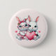 Button with an illustration featuring 2 white furry bunnies sharing a big pink heart. The girl bunny is wearing a cute bow on her head and heart-shaped glasses. The boy bunny is wearing an adorable little suit with a tie.