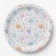 Cute bunnies with carrots and flowers pastel colou paper plate