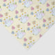 Patterned tissue paper with a cute mom and baby bunny standing together. Yellow daisies in the background. Whimsical butterflies fluttering about.
