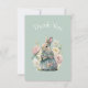Cute watercolor bunny rabbit in a dress surrounded by pastel flowers. Sage green background baby shower thank you note. So simple and sweet. Perfect for your “Thank you” cards for any occasion.