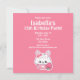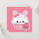 Super cute pink bunny cupcake with happy face and monogram. Add your party details to the back.