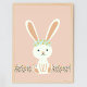 Cute Bunny Flowers Pink Kids Nursery Wall Art