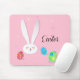 Happy Easter Spring Holiday! Cute Bunny Holiday Mouse Pad Pink Color, Rabbit and Easter Eggs Hunt, Easter Brunch, Illustration Kids Party Decorative Cartoon Graphic Design for Electronics > Computer & Laptop > Mice & Keyboards > Mouse Pads. Easter Birthday, Baby, Girl, Kids Party. Minimalist style. Personalized Text Template for change name - option. Gifts for her