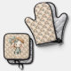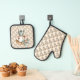 Cute Bunny in Overalls with Straw Hat & Bow Oven Mitt & Pot Holder Set
