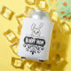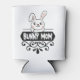 Cute can cooler for bunny lovers featuring a lovely cartoon white rabbit with the caption "Bunny mom"
