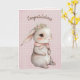 Cute boho bunny with flowers on pink gingham for new baby congratuations