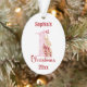 First Christmas ornament with a cute winter bunny and big pink number one for a baby girl. Easily personalize the text. - Kate Eden Art