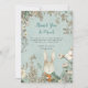 Cute Bunny Powder Blue First Birthday Thank You> Woodland charm for your 1st birthday thanks, with a cute bunny holding carrots peaking out from behind cream flowers and greenery. You can easily personalise the text to your own details.