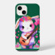 Cute bunny praying guitar with hearts and flowers iPhone case