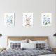 Add the finishing touches to your baby's nursery or child's bedroom with these gorgeous art prints! Design features bunnies, blue watercolor flowers and greenery.