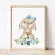 Cute Bunny, Rabbit, Blue Flowers, Boy Nursery Poster