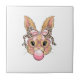 Cute Bunny Rabbit Face Leopard Glasses Girl Happy Tile