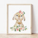Cute Bunny, Rabbit, Pink Flowers, Girl Nursery Poster